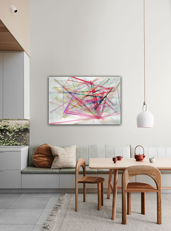Super kinetic and colorful, this playful piece produces animated shapes and colors as you walk by . This fine art lenticular print is 1 of 3 and measures 36" x 24". Also...it lights up a room.
